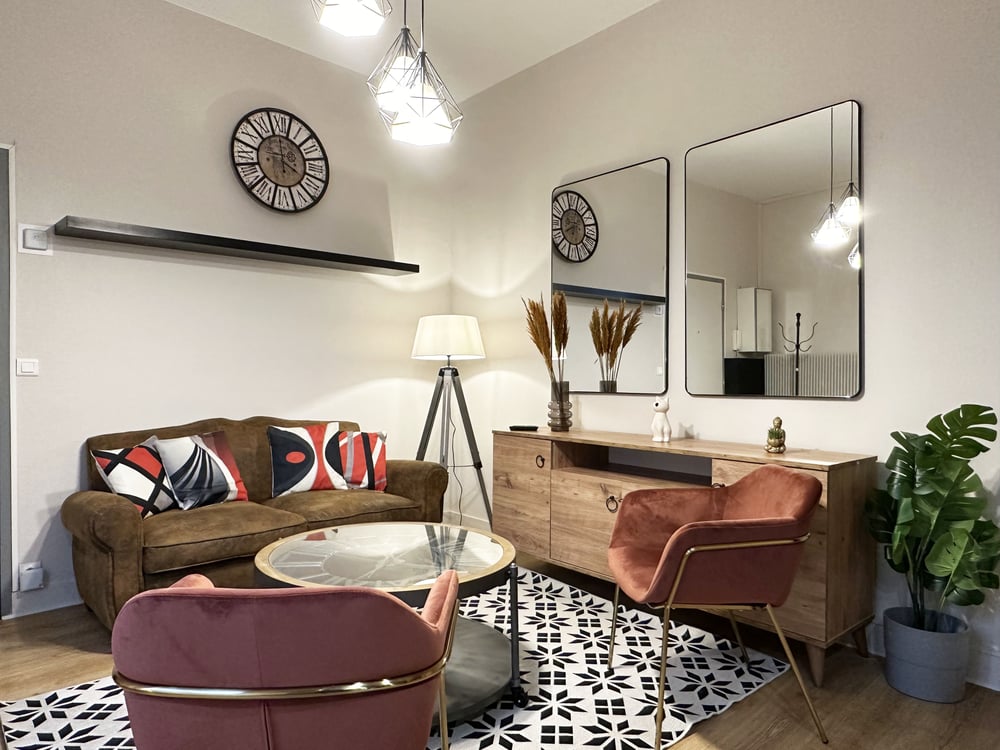 Bienvenue au "Saint-Julien", votre espace moderne et chaleureux pour une escapade citadine. Cet appartement T2, avec sa chambre confortable et son salon élégant, est parfait pour les couples ou les voyageurs seuls cherchant à explorer la ville historique de Chartres. La chambre, dotée d'un grand lit et d'une décoration aux touches colorées, offre une ambiance apaisante pour vos nuits. La salle de bain moderne est équipée d'une douche spacieuse et d'un design épuré pour un réveil tonique. Détendez-vous dans le salon où un canapé et une décoration soignée créent un lieu idéal pour se reposer ou profiter d'un moment convivial. La cuisine ouverte, avec ses équipements contemporains et sa touche de rouge vibrant, vous invite à préparer des repas savoureux. L'appartement est situé à quelques minutes des rues animées de Chartres, de sa célèbre cathédrale et des bords de l'Eure. "Le Saint-Julien" est votre point de départ parfait pour découvrir les trésors de la ville et profiter d'un séjour en toute tranquillité.
